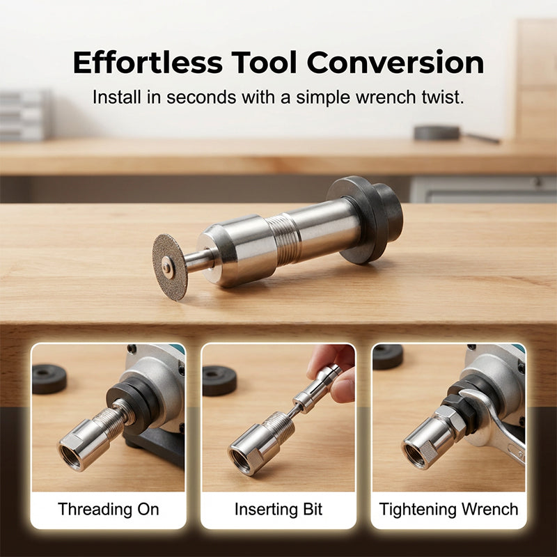 EFFORTLESS TOOL CONVERSION - No complex modifications required. Simply thread the adapter onto your angle grinder spindle, insert your desired bit into the collet, and tighten the nut securely.