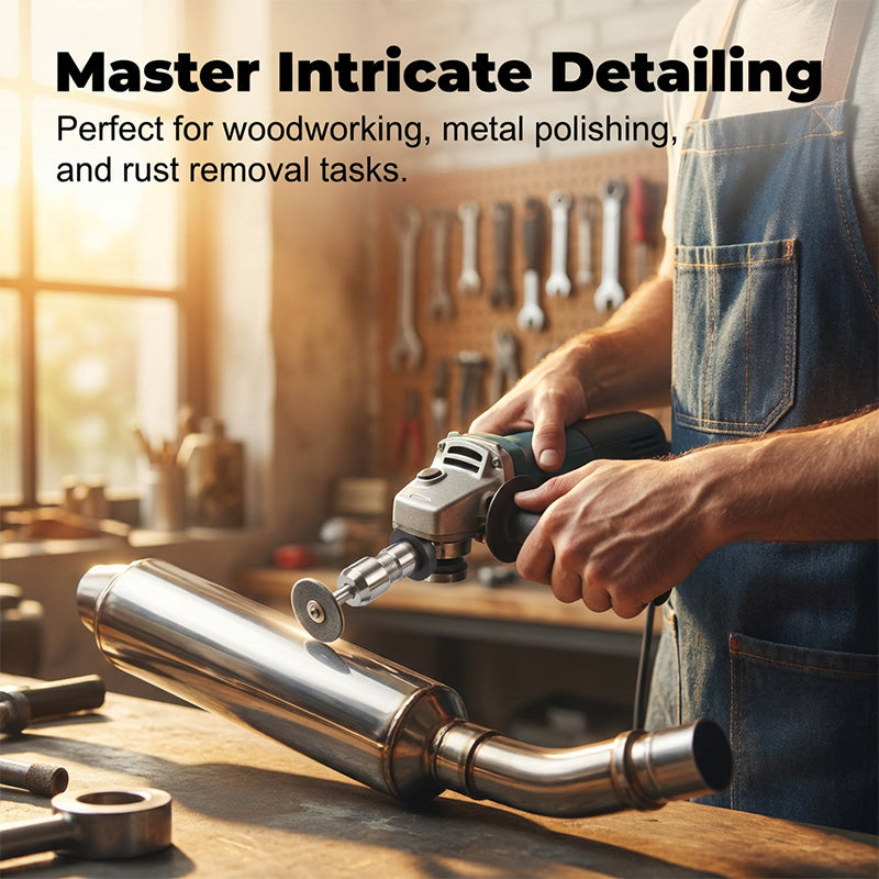 MASTER INTRICATE DETAILING - Unlock endless creative possibilities. Whether you are polishing metal pipes, carving intricate wooden sculptures, or deburring sharp edges, this adapter provides the control you need.